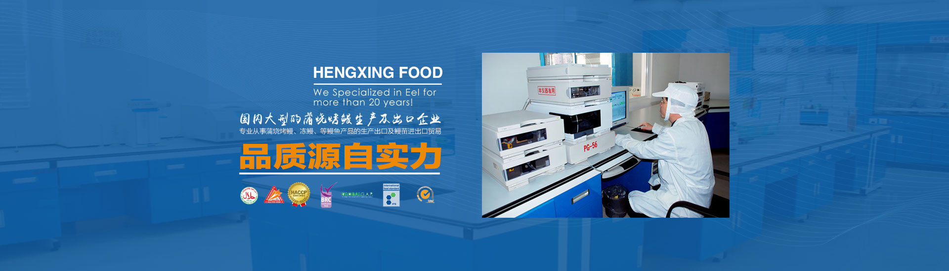 江西恒興食品有限公司是外商獨資企業,注冊資本1050萬美元。專業從事蒲燒烤鰻、凍鰻、等鰻魚產品的生產、出口及鰻苗進出口貿易二十多年,是國內領先,品質一流的蒲燒烤鰻生產及出口企業。多次被授予"省級龍頭""出口十強企業"等榮譽。公司總部位于福建省福清市,在江西省撫州市和福建省福清市建立有兩個現代化的生產加工廠和中國大陸主要的鰻苗培育中心。目前,公司已經順利通過了:美國HACCP, 歐盟EEC,ISO9001, ISO22000, 英國BRC,HALAL等質量體系認證。
